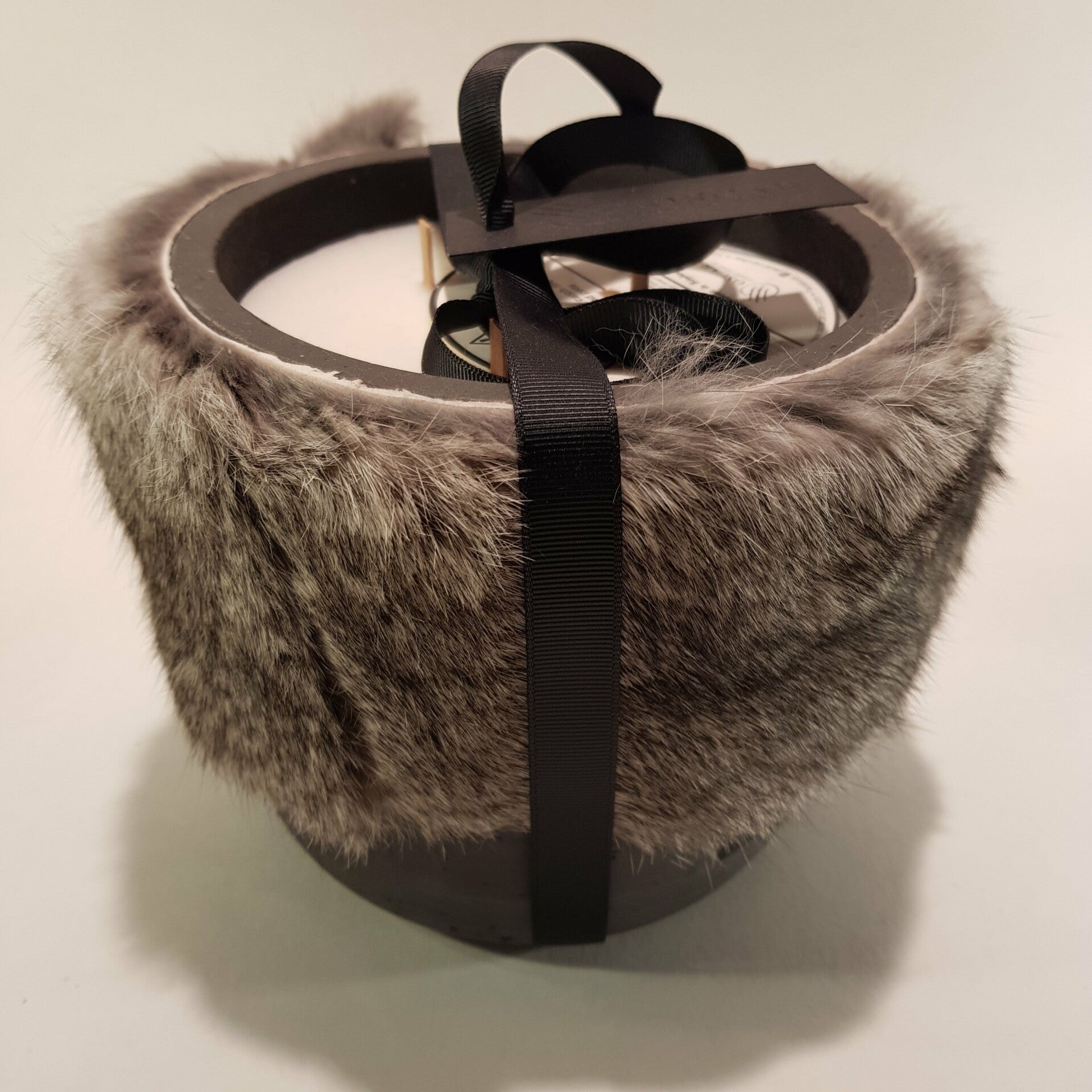 Geurkaars in betonnen pot met konijnenvacht rondom L