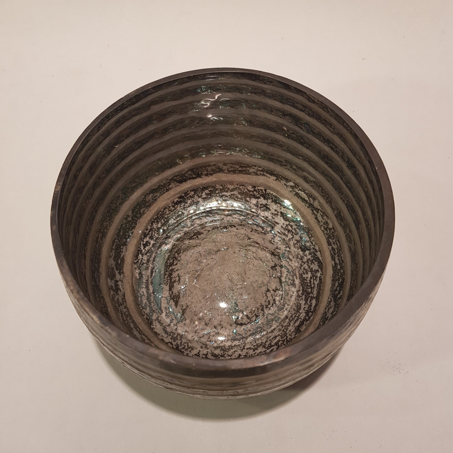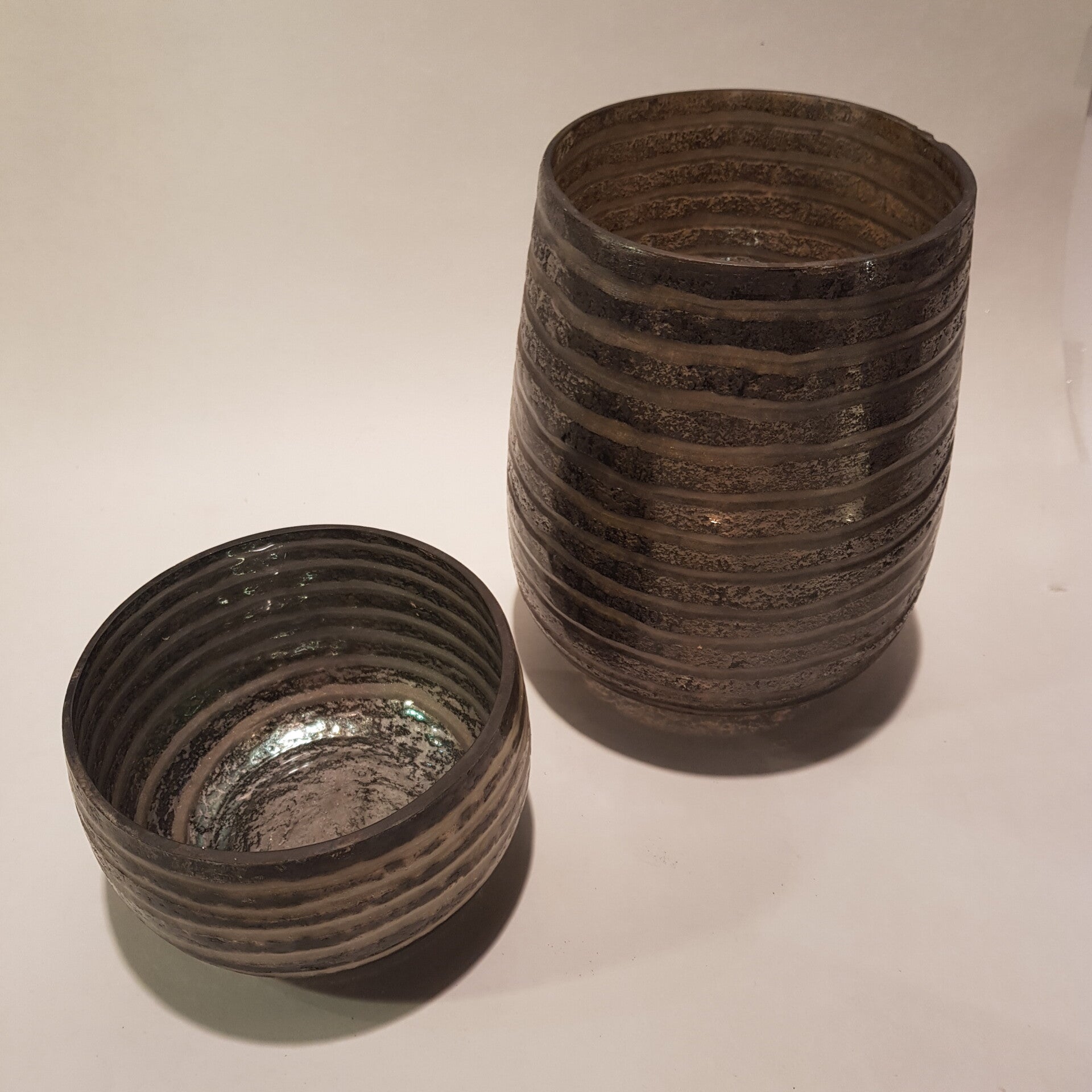 Theelicht donkergrijs/beige gestreept horizontaal Small