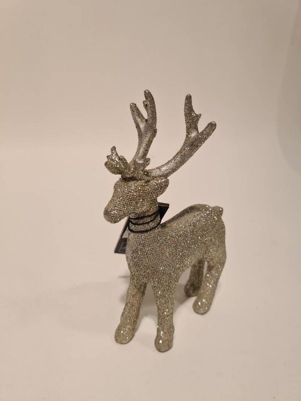 Kersthertjes glitter zilver - groot 24 cm