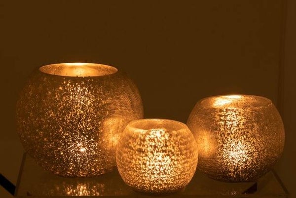 Windlicht zilver crackle M