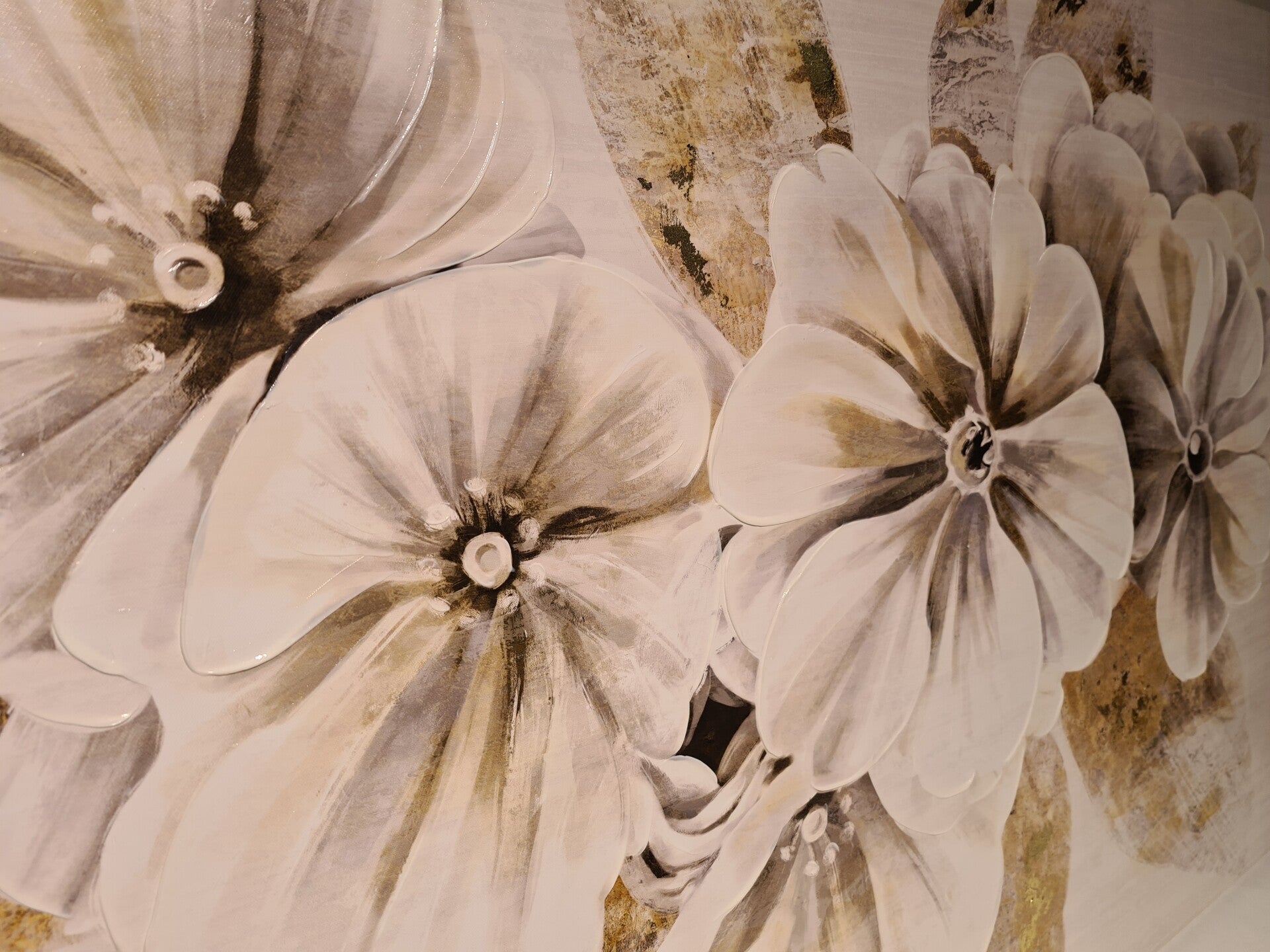 Mooie schilderij met witte bloemen