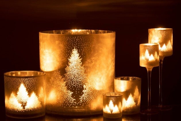 Boompjes zijn zichtbaar wanneer kaarsje brand, zonder kaars lijken ze bevroren glas
