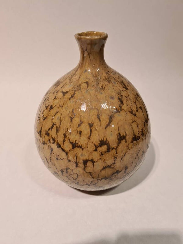 Vaas keramiek bruin/beige gevlamd M