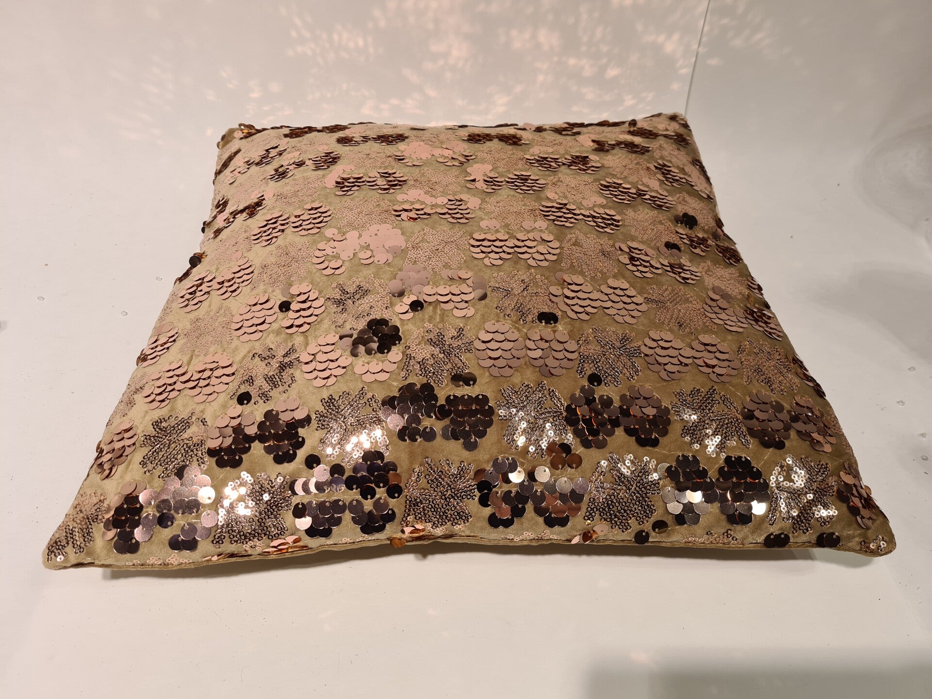 Kussen oud bruin/taupe met pailletten vierkant