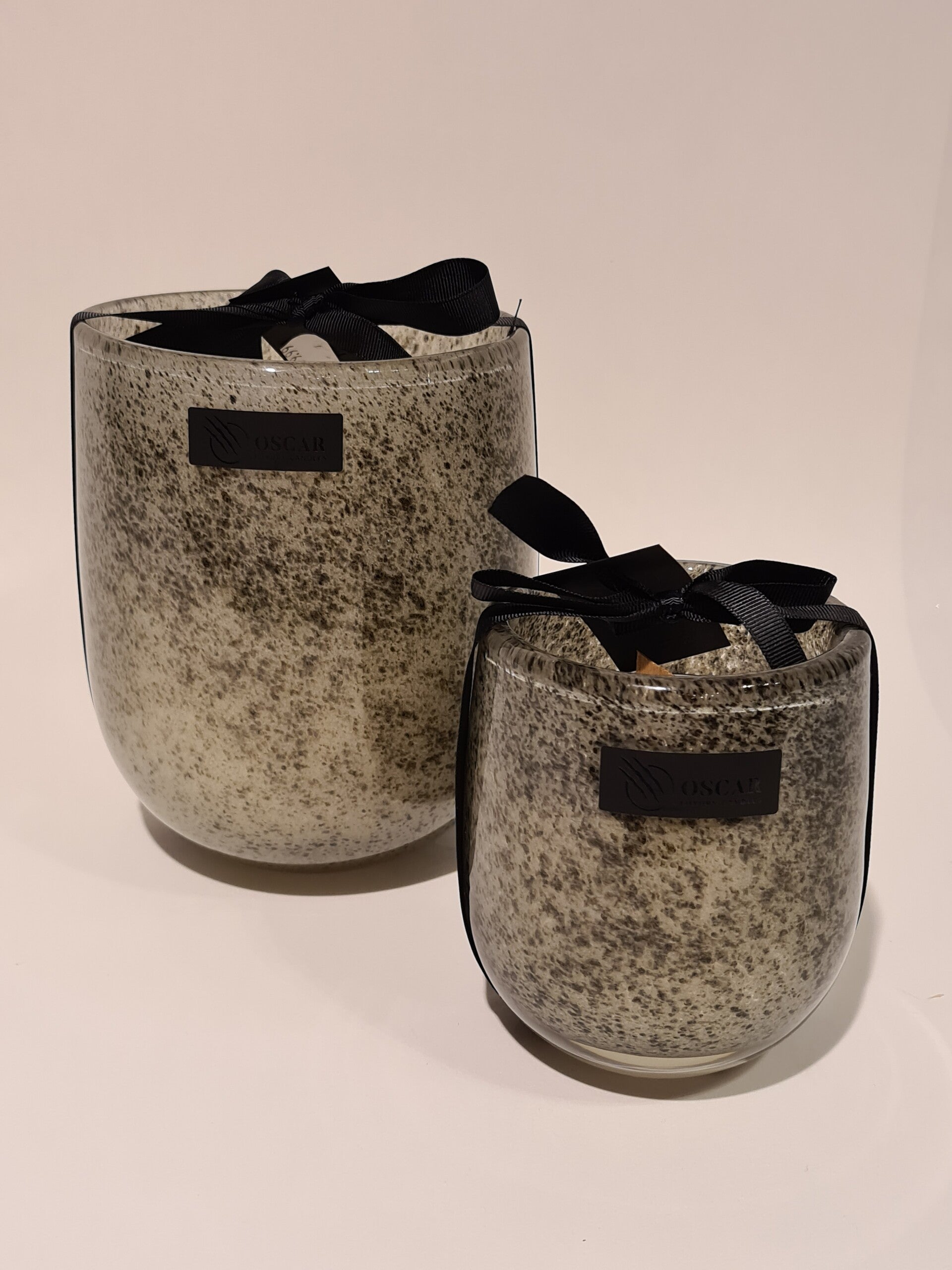 Oscar Candles - Glazen kaars grijs spikkel M